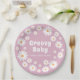 Groovy Baby Girl Pink Daisy 70s Retro Baby Shower Paper Plate