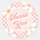 Groovy Baby Pink Check Daisy thank you Classic Round Sticker