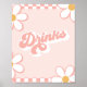 Groovy Baby shower Drinks sign with pink check and daisies.