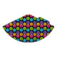 A vibrant and playful birthday invitation featuring a psychedelic, retro-inspired design. The dark background is decorated with colourful, swirling shapes, abstract lines, and vibrant drips of colour reminiscent of the 1970s. The border is a fun pattern of multicolored smiley faces, with stars and bubbles scattered throughout the design. The text is in a mix of bold and playful fonts, with key details highlighted in bright blue and pink.