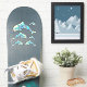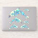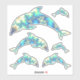 This is a cool sea life theme design set that features a groovy fractal dolphin in four sizes and jumping in two directions. There are jagged lightning bolt style designs on them in gradient shades of blue and yellow like sunny ocean water and whimsical energy. There is one large, one medium, two small and two mini dolphins in this cheerful brightly coloured set.