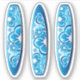 A vinyl decal illustrated with 3 groovy surfboards lined up waiting to hit the waves. These blue surfboards are decorated with a cool sixties retro flower theme.