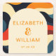 Groovy Colourful Retro Wavy Boho Wedding Square Paper Coaster