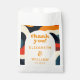 These groovy, colourful, retro, wavy boho wedding thank you favour bags can be personalized with your information in modern typography. Designed by Thisisnotme©