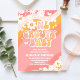 Celebrate your little ones milestone with this retro groovy first birthday invitation featuring colorful wavy stripes, cheerful daisies, butterflies, hearts, and stars. The playful 1960s-inspired design creates a fun, vibrant atmosphere perfect for a baby girls party. Personalize with your childs name, party details, and RSVP information to make it uniquely yours. This boho rainbow invitation is ideal for peace, love, and fun-filled celebrations that guests will adore.