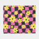 Groovy Daisy Floral Chequerboard, Y2K 90s Fleece Blanket