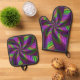 Groovy Energetic Colourful Neon Fractal Pattern Oven Mitt & Pot Holder Set