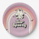 Two Spooky! Retro groovy Ghost Halloween 2nd birthday party plates. Spooktacular birthday bash design with retro ghost, rainbow, flowers and bats.