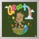 Check out this groovy drawing of Groot among flowers with his name overhead flowing into a rainbow!