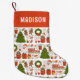Groovy Hippie Retro Merry Christmas Santa Funny Personalized Name Stockings features a colourful vintage Christmas themed icons such as Santa Claus, Christmas trees, gingerbread people, wreaths, gifts and the text "Merry Christmas and happy New Year" in modern red script typography.Perfect for Christmas gifts and holiday decor. Designed by ©Evco Holidays www.zazzle.com/store/evcoholidays