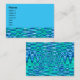 Turquoise and blue abstract. Colourful card design for business or personal use. Add your MySpace, Facebook or LinkedIn information to this artistic profile card. Or use this colourful art card for your own unique business cards or calling cards. This digital abstract art design will definately make your business card stand out with your friends, clients and customers. Business cards are made with 2-sided, full colour printing. 10 types of card stock are available including standard, premium or luxury. Business cards are customizable, you can change the font style size and colour. Volume Discount available when you buy in bulk.