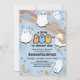 Celebrate Halloween with this Groovy Little Boo Baby Shower Invitation! Featuring playful ghosts, a shimmering disco ball, a blue pumpkin, a glowing moon, small stars, and delicate flowers, all set against a vibrant blue background, this invitation brings a fun retro vibe to your baby shower. BBS491