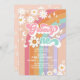 Groovy ONE Daisy Rainbow Hippie Retro Birthday Invitation