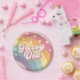 Ajoutez une touche de finesse à la décoration de votre petit anniversaire avec ces plaques de papier d'anniversaire à thème les années 70 arc-en-ciel.