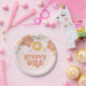 Retro inspired groovy one 1st birthday plates with 70's style flowers and boho fonts and colours.