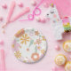 Retro inspired groovy one 1st birthday plates with 70's style flowers and boho fonts and colours.