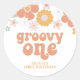 Groovy One Retro Floral first birthday Classic Rou Round Sticker