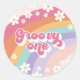 Groovy One Retro Rainbow 1st Birthday Classic Round Sticker