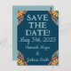 Groovy Orange Flowers on Deep Blue Save-the-Date Postcard