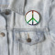 Unique peace symbol button pin in colourful shiny metal look design on a white background. To change the white background click on customize and then on edit and then on background to change the colour. A groovy retro symbol of peace and love!