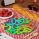 Paper plates with a sixties vibe. Cool peace signs in bright and vibrant colours featuring all the colours of the rainbow.