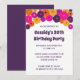 These custom invitations are perfect for birthday parties and other special events. All the text is ready to be personalized with your own event details. It has a fun retro flower power style with illustrations of brightly coloured daisy flowers in shades of purple, orange, yellow and hot pink and your text in coordinating dark purple lettering.