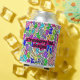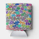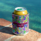 Standard foam can cooler decorated with my own hand-drawn Groovy Rainbow Splatter design, and official Strawberry Inc. Designs logo!