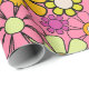 Groovy Retro 60s 70s Hippie Pink Floral Pattern Wrapping Paper