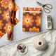 Groovy retro 70s boho hippie orange flower pattern wrapping paper