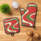 Groovy Retro Christmas Swirl Pattern Oven Mitt & Pot Holder Set