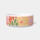 This is a heavy, durable bowl decorated with Tibbies of many colors, the perfect size for hungry/thirsty Tibs. The design is interesting and printing clear.