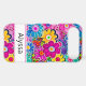 Make a retro statement with this groovy 70s inspired hippie flower power floral iphone 17 air phone case! It's modern and trendy with bright multi-coloured watercolor flowers. Make it uniquely yours with your name in a mod font in black. It will look fabulous on your phone!