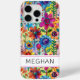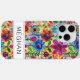 Make a retro statement with this groovy 70s inspired hippie flower power iphone 15 pro max phone case! It's modern and trendy with bright multi-coloured watercolor flowers. Make it uniquely yours with your name in a mod CAP font in black. It will look fabulous on your phone!