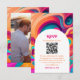 Groovy Retro Orange Pink funky QR code RSVP Card