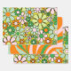 Groovy Retro Patterns 60s 70s Orange Green Wrapping Paper Sheet
