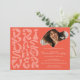 Get ready to celebrate in style with this Groovy retro-cool bridal shower invitation! Featuring a fun and playful design, this invitation showcases bold, groovy typography in a chic peach and orange background, giving it a nostalgic yet trendy vibe. The top right corner features a cut-out heart shape with a photo, adding a personal touch to the invite. The stylish script font highlights the bride-to-be's name, making her the star of the show. Perfect for a bridal shower that's full of personality and flair, this invitation sets the tone for a memorable celebration. All the colours are editable to match your party theme!