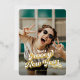 Groovy retro typography that says "Have a Groovy New Year". Customize these shiny gold foil greeting cards with a personalized photo and custom message on back.