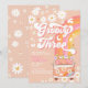 Groovy THREE Pink Peach Daisy Hippie Birthday Invitation