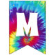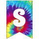 It'll be a groovy good time with this fun 1960s theme tie dye bunting. A rainbow tie dye swirl background sets off the white retro looking text on each flag that has its own editable letter. Available with matching items.