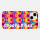 Cool phone case featuring a colourful retro tie dye background with customizable hippie "groovy vibes" text.