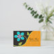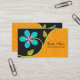 Gros modèle carte de visite de fleurs stylisées turquoise gras. Un design élégant et impressionnant, avec une fleur turquoise audacieuse aux feuilles verts sur arrière - plan noir et orange. Sur l'orange il y a un motif damassé. Cliquez sur Customiser et choisissez parmi plus de 200 couleurs pour changer la couleur arrière - plan (orange). Idéal pour un fleuriste, des textiles ou pour une carte de profil personnelle.