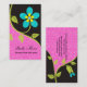 Gros modèle carte de visite de fleurs stylisées turquoise gras. Un design élégant et impressionnant, avec une fleur bleu turquoise audacieuse aux feuilles verts sur arrière - plan noir et rose chaud. Sur le rose il y a un motif damassé. Cliquez sur Personnaliser et choisissez parmi plus de 200 couleurs pour changer la couleur arrière - plan (rose chaud ). Idéal pour un fleuriste, des textiles ou pour une carte de profil personnelle.