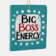 "Big Boss Energy" est un design de texte mignon en bleu avec du texte en noir et rouge, avec une forme d'accent blanc et des points blancs à texture blanche.