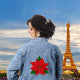 Fleur rouge poinsettia Denim Jacket de Noël.