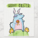 Un lapin délicieux, légèrement grincheux tenant un oeuf de Pâques, accompagné de deux socs jaunes, grincheux et gais, contre un arrière - plan de points, un dessin humoristique parfait pour une fête, une fête ou un événement de Pâques. www.floatinglemons.com www.floatinglemonstreats.com Copyright © Mariana Musa for Floating Lemons. Tous droits réservés.