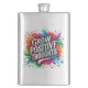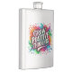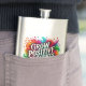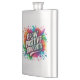 The product is a good size and came exactly as it was pictured. The lid is not attached to the flask, which could be dangerous on drunken nights... The print came out surprisingly well and looks very sharp. Would definitely recommend.