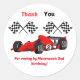 simple red car and flag,Growing up two fast boy birthday party Classic Round Sticker