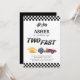 Cute Growing Up Two Fast Birthday party invitation. With a chequered flag and a cool race car with flames coming out the back (you know he will love that) this one is a winner. There is a 2 on the car as well! We used a racing font for a special touch. Add your child's name and the party details for a fun race car invitation everyone will love. See coordinating items in our shop, Enchanted Finch.
