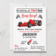 Growing up two fast red race sports car birthday invitation