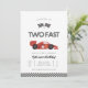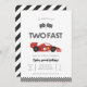 Rev your engines and get ready to celebrate with our 'Two Fast' race car birthday invitation! Featuring high-speed designs and customizable options, this invitation sets the pace for an action-packed party. Buckle up and join us as we race into another year of adventures with the birthday boy/girl at the wheel